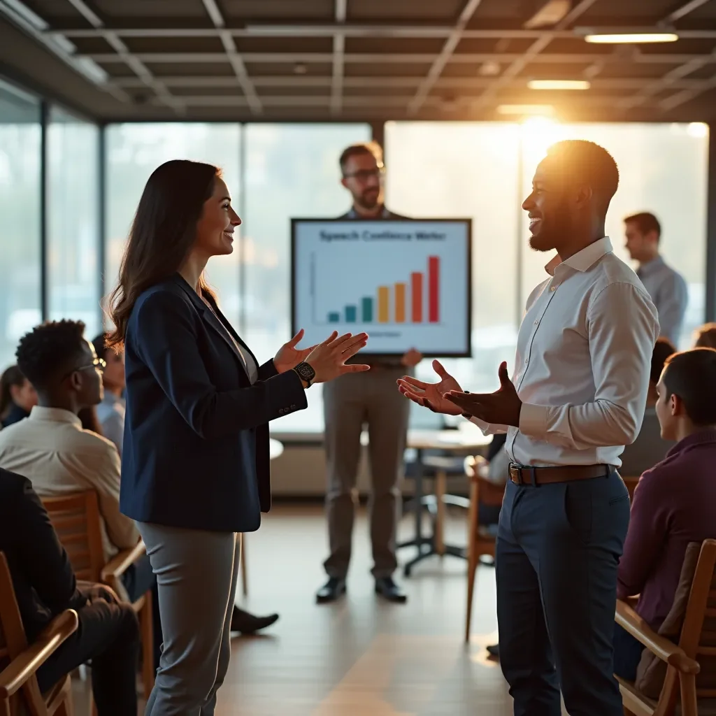Ontketen je spreekvaardigheden en overtuig je publiek met onze unieke trainingen. Maak gebruik van onze "Speech Confidence Meter" en ontdek je groei in zelfvertrouwen. Inspireer en overtuig met elke presentatie!