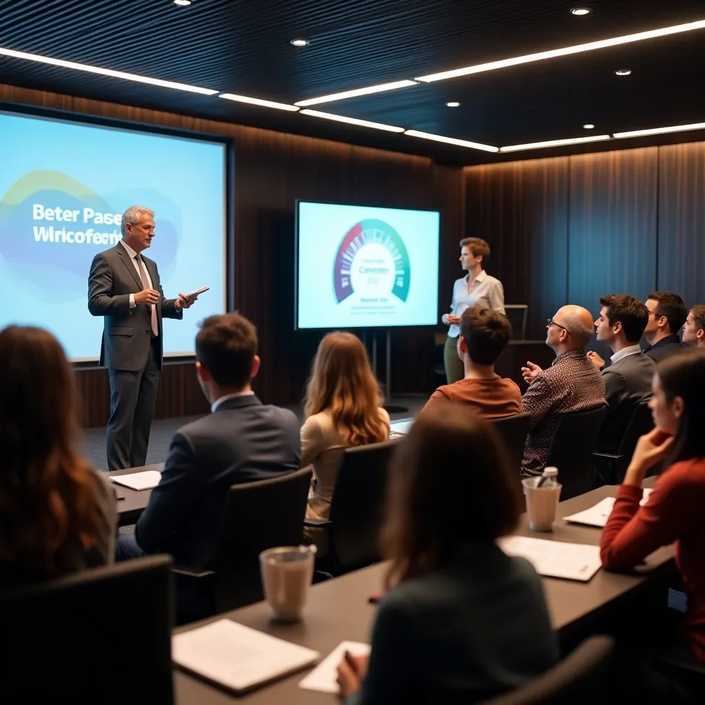 Onze training richt zich op het ontwikkelen van sterke presentatievaardigheden, inclusief lichaamstaal, stemgebruik en het omgaan met zenuwen.